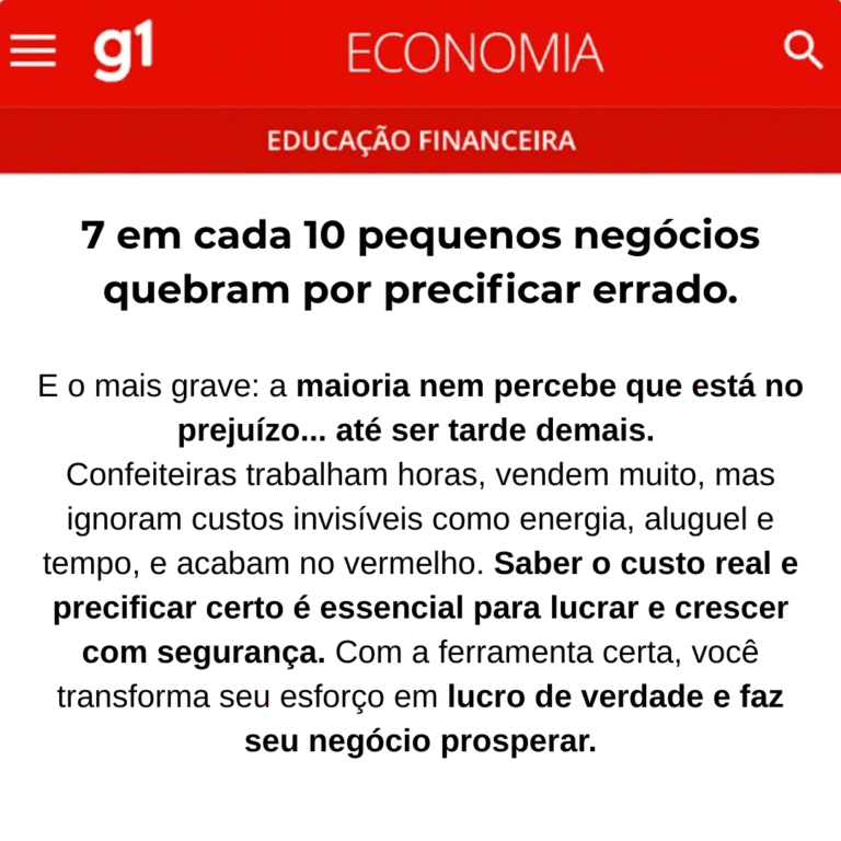 Se você vende muito, mas nunca vê lucro, copia preço da concorrência, não sabe quanto cada doce realmente custa e sente que trabalha demais para ganhar pouco, está na hora de agir.