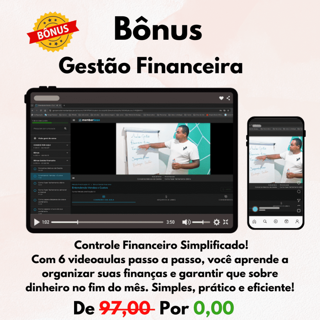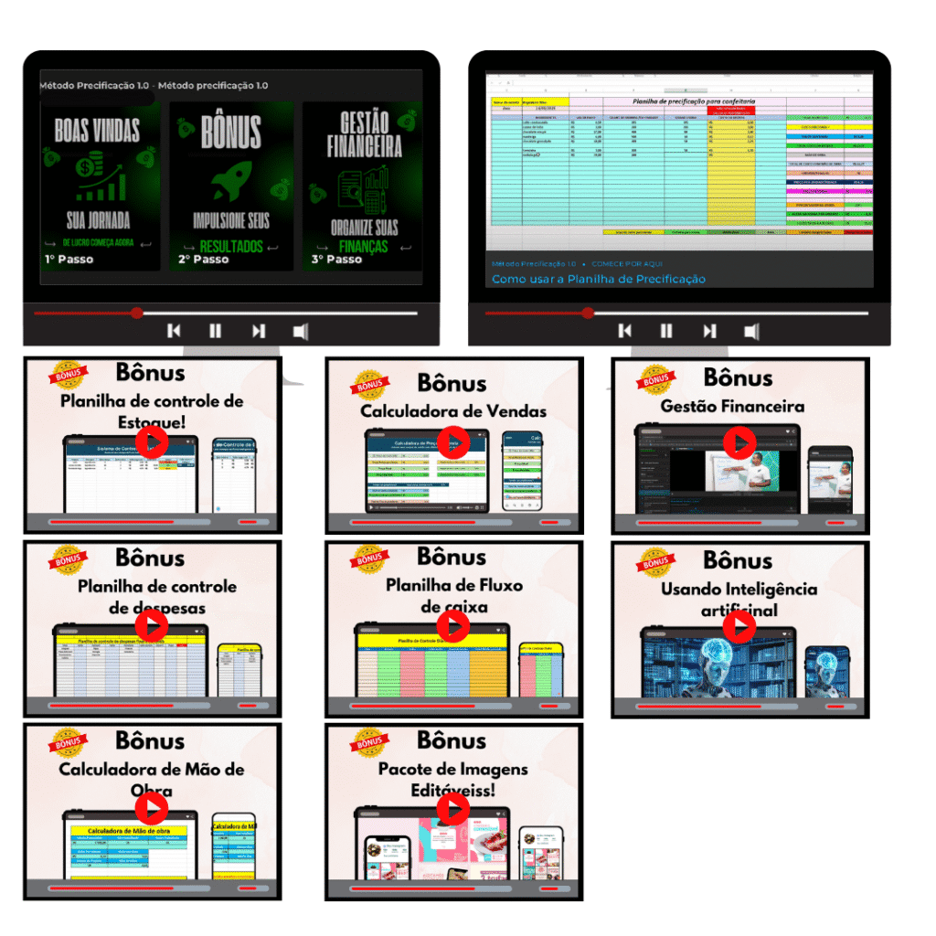 Planilha de Precificação + Bônus Especiais + Treinamento de Gestão Financeira Completo.