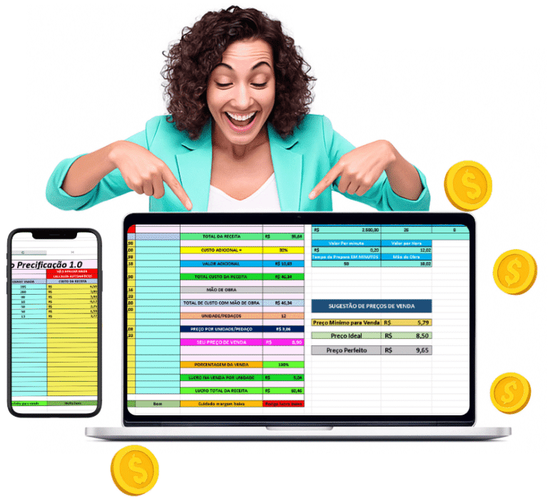 Em poucos minutos, descubra o valor exato de cada produto e veja como é fácil aumentar seus lucros, mesmo que você não saiba precificar.